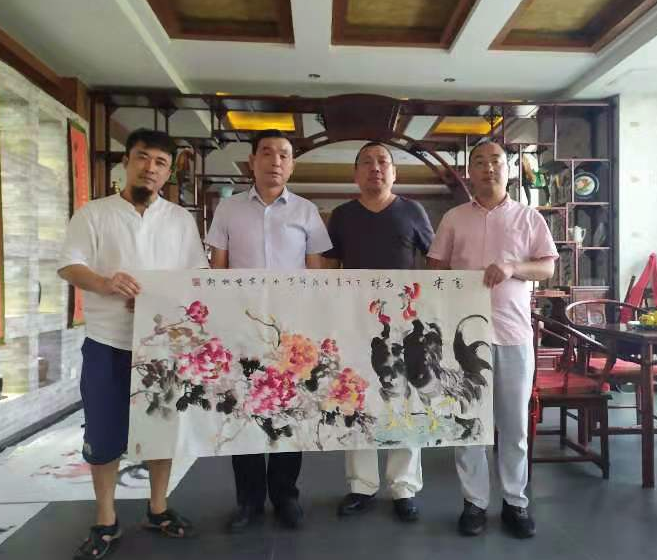 (▲陝西繼峰文化藝術有限公司董事長高繼鋒(fēng)先生向(xiàng)代表團(tuán)贈送畫作)