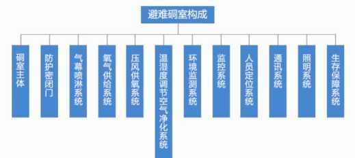 避難硐(dòng)室設置在式煤礦井下適當位置,配備有維持人員生存所需的相關設備設施和食物(wù)、水等,為(wéi)保證(zhèng)煤礦災害發生時,給無法撤離災區的遇(yù)險人員提供生(shēng)命保(bǎo)障的空間。避難硐室與礦井安全監測(cè)監控、人(rén)員定位、壓風自救、供水施救、通信聯絡等係統相連,形成井下整體性的安全(quán)避難係統,主(zhǔ)要由防爆密閉係統、氧氣供給係統、通訊(xùn)及人員定位係統、監測監控係統、環境(jìng)控製係統、照明係統(tǒng)、生存保障係統(tǒng)組成。